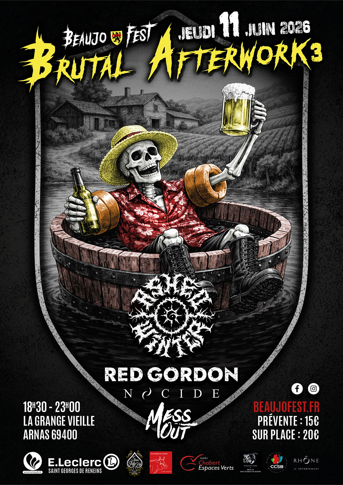 Le Brutal Afterwork est un mini festival organisé par Beaujo’Fest dans une vieille grange, offrant une expérience intime et brute. Trois groupes rock et metal se produisent dans un cadre authentique et énergique, créant une atmosphère électrisante. Cet événement privilégie l’aspect convivial et proche des artistes, permettant aux festivaliers de vivre une soirée unique et immersive dans une ambiance de musique live underground. Un moment de rencontre et de partage pour les vrais passionnés.